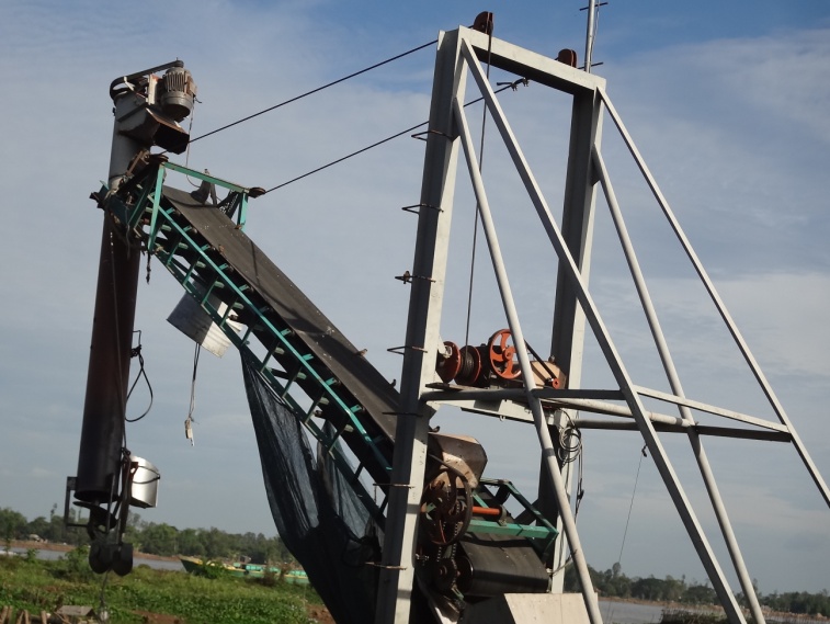 - Băng tải nghiêng: dùng để vận chuyển nguyên liệu lên xuống giữa các tầng sấy.